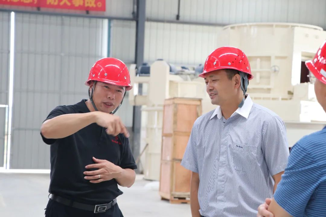調研組走訪了公司整個生產現場,深入的了解公司的經營現狀。走訪過程中,總經理周保弟做了簡單的匯報,公司從如何贏取磨粉機市場訂單到保質保量按期交貨,如何從技術創新到新產品開發以提升企業競爭力,如何加強企業內部管理以提升企業形象和綜合實力。同時,還把公司新開發的氫氧化鈣生產線與超細立磨等新產品也一一展現給調研組。易主任說,市場競爭就是人才的競爭,就是技術力量的競爭,就是企業綜合實力的競爭,對桂林礦機在今年疫情影響較大的情況下,能逆勢增長給予的充分的肯定。調研組還詳細了解了公司目前遇到的困難或存在的問題,他們將整理好提案向縣委縣政府報告并督查其整改落地。