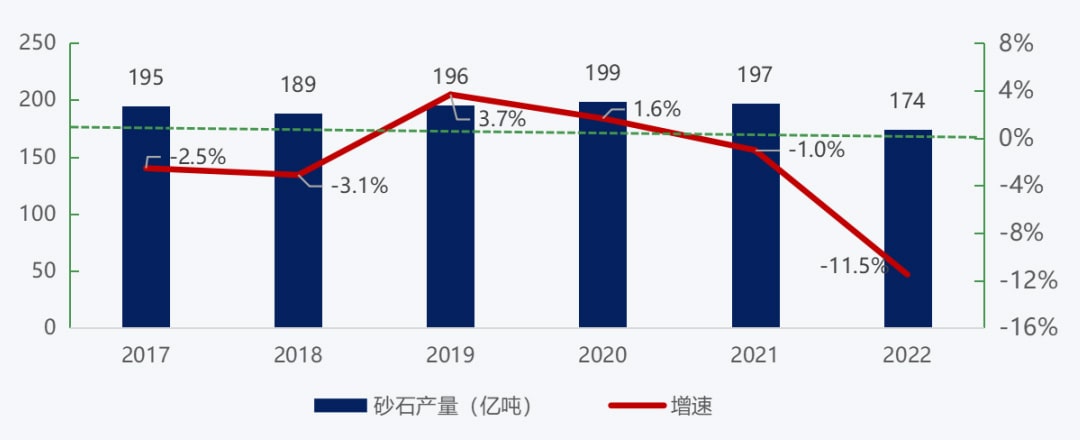 2017-2022年我國砂石產量變化情況